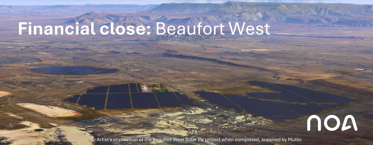 We’re excited to share a major milestone for NOA and for South Africa’s energy transition: our offtake partner Mulilo has successfully reached financial close on the 380 MW DC Beaufort West Solar PV facility near Beaufort West in the Western Cape – one of the largest utility-scale solar developments in the country. Once operational, the facility will deliver approximately 818 GWh of clean electricity annually to commercial and industrial customers across South Africa through a multi-year Power Purchase Agreement with NOA. That’s enough to power approximately 345,000 households every year, while avoiding an estimated 860,000 tonnes of CO₂ equivalent emissions annually.
